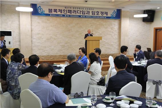 한편, 이날 포럼에는 동국대학교 국제정보보호대학원 박성준 블록체인연구센터장을 초청, ‘블록체인 패러다임과 암호경제’라는 주제로 특강을 펼쳤다.