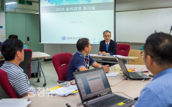 한국가스기술공사(사장 고영태)는 12일 대전에 위치한 KT 인재개발원에서 임직원 윤리의식 제고 및 윤리·청렴문화 확산을 위한 ‘2018년도 윤리경영 워크숍’을 개최했다.
