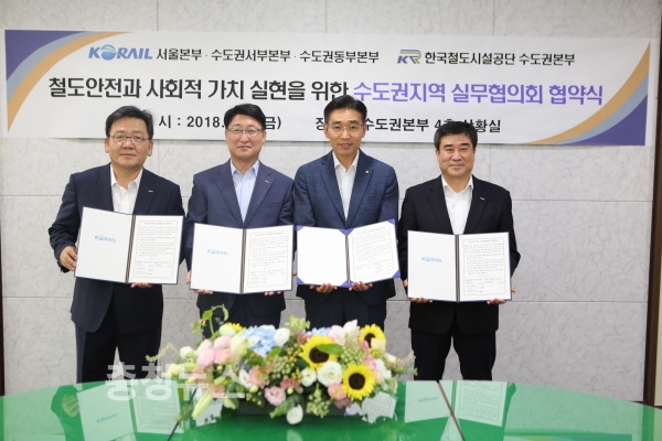 코레일 서울본부, 수도권서부본부, 수도권동부본부와 한국철도시설공단 수도권본부는 13일 철도안전과 사회적 가치 실현 등 상호 협력체계를 강화하고자 “수도권지역 실무협의회”를 구성․운영하기로 하고 업무협약을 체결했다고 밝혔다.