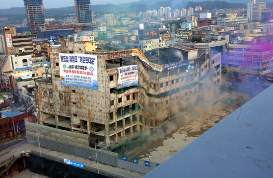 건물 발파는 워낙 많은 인파가 몰린 탓에 안전사고를 우려해 예정시간보다 32분여가 지난 5시 18분경에 이뤄졌으며, 중앙데파트가 먼지로 사라지는데 소요된 시간은 겨우 8초였다.
