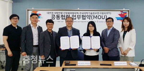 대전권 대학연합 산학협력협의체(회장교, 한남대학교)는 시장중심 기술사업화 전문가 양성교육과 세대 융합형 일자리 창출을 위해 한국과학기술정보연구원(KISTI)과 공동협력 업무협약을 체결했다고 18일 밝혔다.