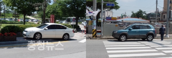 인도 및 횡단보도 주차 차량 『스마트폰 생활불편신고 앱』 신고 단속 실시