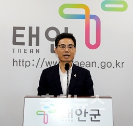 충남 태안군은 19일 군청 브리핑실에서 기획감사실 정례브리핑을 갖고, 민선7기 성과 창출을 위해 하반기 △광개토 대사업의 조기 가시화를 위한 기획·조정 역할 강화 △핵심정책 수요조사 실시 △민선7기 군정을 견인할 ‘역점과제’ 선정·관리 △지역개발을 가로막는 ‘행정규제’ 완화 등에 앞장서겠다고 밝혔다.