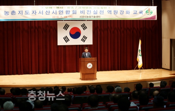 충남 서산시는 19일 서산시농업기술센터 교육관에서 농촌지도자 서산시연합회(회장 조성호) 회원 300여 명이 참석한 가운데 농촌지도자 비전 찾기 특별교육을 실시했다.
