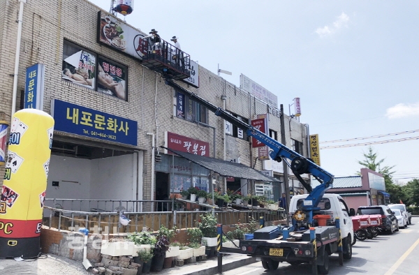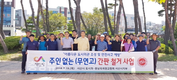 충남 서산시는 지난 19일 충남옥외광고협회 서산시지부(지부장 임종규)에서 시민 안전 확보와 쾌적한 도시미관 조성을 위해 주인 없는 간판 무상 철거를 실시했다고 밝혔다.