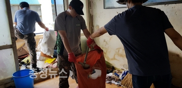 충남 예산읍행정복지센터(읍장 함용섭)와 1789부대 4대대 예비군지역대원은 18일 신례원1리 저장강박 가정을 방문해 청소 봉사활동을 실시했다.