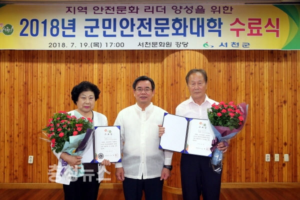 충남 서천군(군수 노박래)은 지난 19일 서천문화원 강당에서 ‘2018년 군민안전문화대학’ 수료식을 개최했다.