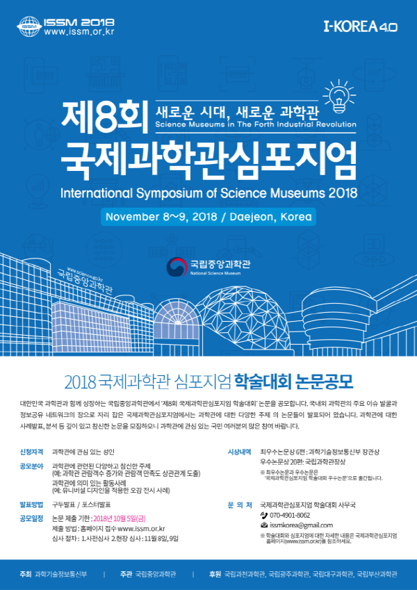 국립중앙과학관(관장 배태민)이 제8회 국제과학관심포지엄 학술대회 논문을 공모한다.