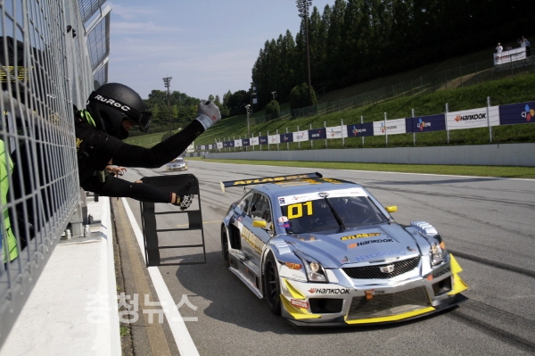 한국타이어(대표이사 조현범)가 후원하는 ‘아트라스BX 레이싱팀’의 조항우 선수와 야나기다 마사타카 선수가 지난 22일 용인 스피드웨이에서 열린 ‘2018 CJ대한통운 슈퍼레이스 챔피언십 캐딜락 6000 클래스' 4라운드에서 1, 2위에 오르는 원투피니쉬를 기록하며 우승을 차지했다.