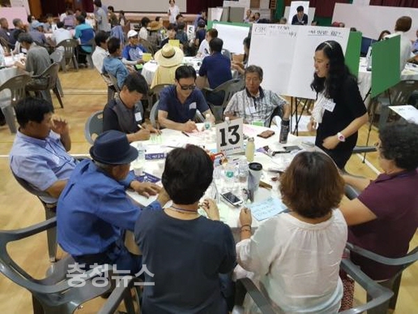 연일 계속되는 폭염에도 아랑곳 하지 않고 홍동주민 160여 명이 원탁회의에 참가했다.
