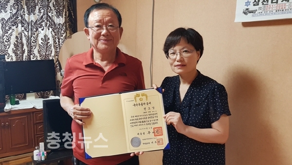 대전지방보훈청(청장 강윤진)은 24일 권오영 참전유공자를 방문해 국가유공자 증서를 전수했다.