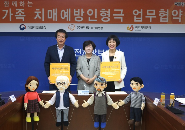 이에따라 대전광역치매센터와 대전지방보훈청, (주)한화대전사업장 3개 기관은 전 직원을 대상으로 치매교육 및 홍보를 실시하고, 치매예방 인형극을 활용한 지역사회 치매정보 알리기에 앞장 설 예정이다.