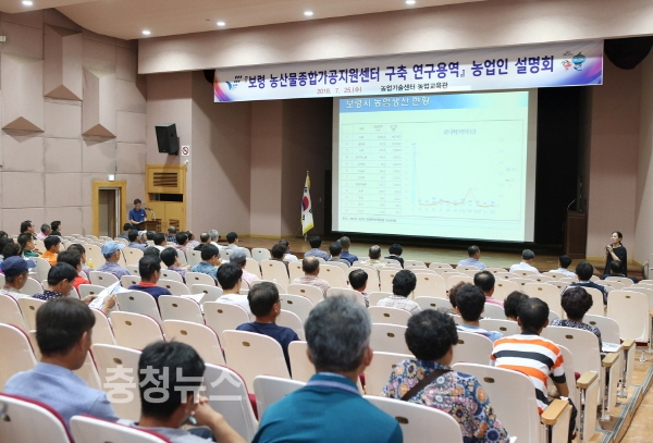 충남 보령시는 지난 25일 오후 농업기술센터 회의실에서 김동일 시장과 농업 관련 종사자 등 300여 명이 참석한 가운데 보령 농산물 종합가공 지원센터 구축 연구용역 농 업인 설명회를 가졌다.