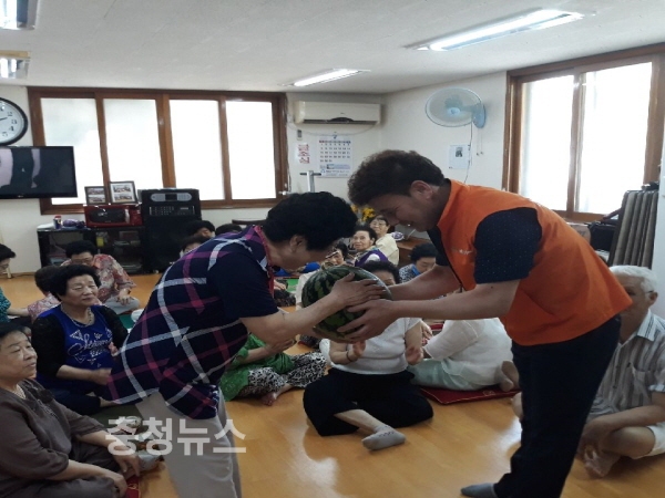 용두동·산성동 중복 앞두고 경로당 수박전달