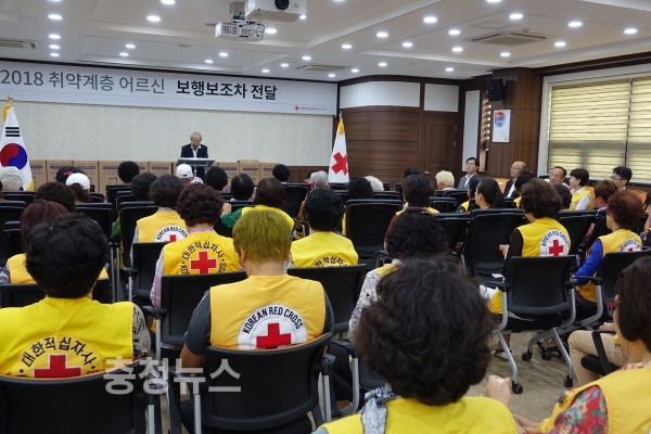 한국서부발전(사장 김병숙) 26일 태안군 대한적십자사 태안지구협의회를 방문해 보행이 불편해 외출이 어려운 취약계층 독거어르신 등을 위한 보행 보조차 65대를 기증했다.