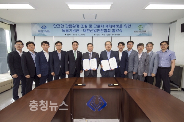 독립기념관(관장 이준식)은 대한산업안전협회(회장 윤양배)와 26일 독립기념관 겨레누리관에서 관람객의 안전한 관람환경 조성과 기념관 근로자의 재해예방을 위해 업무협약을 체결했다.