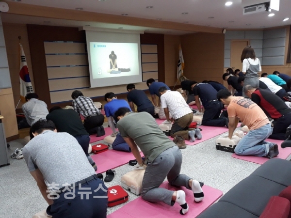 이번 교육은 충남대학교 권역응급의료센터의 협조로 대전하수처리장에 근무하는 환경시설본부 직원 25명을 대상으로 실시됐다.