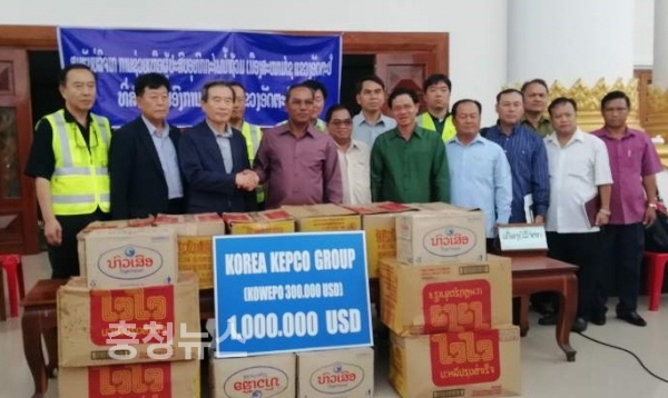 한국서부발전(이하 서부발전) 김병숙 사장이 27일 라오스 세남노이 보조댐 사고 현장을 점검한데 이어, 28일(토) 아타푸 주청사를 방문해 한국전력 등 전력그룹사가 공동으로 마련한 100만불의 구호성금을 전달했다.