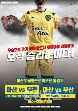 아산은 30일 오후 7시 30분 이순신 종합운동장에서 부천 FC 1995를 상대한다. 리그 4위인 부천은 아산을 꺾어 선두권과 거리를 좁히고 중위권과 격차를 벌리겠다는 계획을 세웠다.