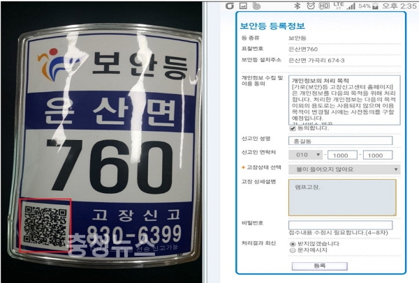 이렇게 가로등 수리일정을 단축할 수 있었던 것은 지난해 12월말까지 관내 16개 읍·면의 모든 가로등에 QR코드가 내장된 표시물을 부착하고 설치 이력과 위치, 사진 등을 데이터베이스화해 실시간으로 관리할 수 있는 도로조명시스템를 구축했기 때문이다.