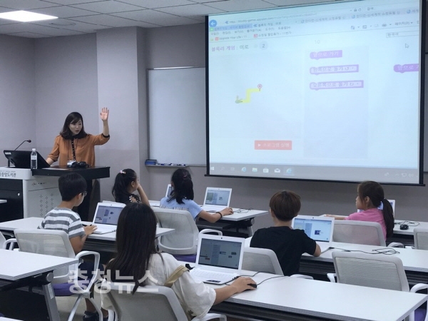 충남 아산시 중앙도서관(관장 권경자)에서 지난 29일 2019년부터 초등학교 5-6학년 실과 수업에서 다뤘던 ICT 활용중심 교육이 코딩기초교육으로 개편됨에 따라 많은 시민들이 관심 갖고 있는 코딩 설명회와 직접 체험할 수 있는 행사를 진행했다.