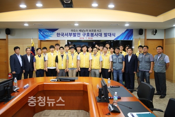 라오스로 출발하기 전, 지난 30일에 개최된 구호봉사대 발대식에는 서부발전 김병숙 사장을 비롯한 전 경영진과 서부발전 유승재 노조위원장 등 노조관계자가 참석해 대원들을 격려하는 자리가 마련됐다.