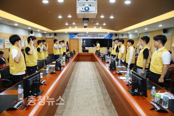 한국서부발전이 라오스 댐 사고에 따른 피해 복구와 이재민 구호를 위해 구호봉사대 조직( 선서 모습)