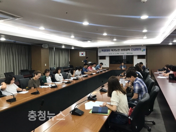 충남 천안시는 2일 시청 중회의실에서 박미숙 복지문화국장 주재로 독거노인 폭염피해 예방 긴급 대책회의를 개최했다.