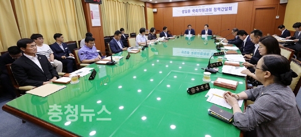 이어 △대산지역 대기보전특별대책지역 지정(안효돈 의원) △대산 정밀화학단지 조성(장갑순 의원) △해미읍성·순교성지 연계 한옥마을 유치(이수의 의원) △서령상가 청년몰 사업 국비 지원(최기정 의원) △도로기반시설 확충 지원 △가정용 전기요금 누진제 폐지(이상 안원기 의원)를 건의했다.