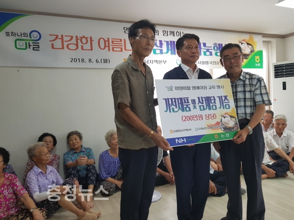 한편, 이번에 기증한 전자제품과 삼계탕은 (사)농촌사랑범국민운동본부의 「나의살던 종합통장 고향지원기금」 사업을 통해 지원되며 충남농협은 기금사업을 통해서 도농교류 활성화와 농촌사랑운동 추진에 더욱 노력 할 계획이다.