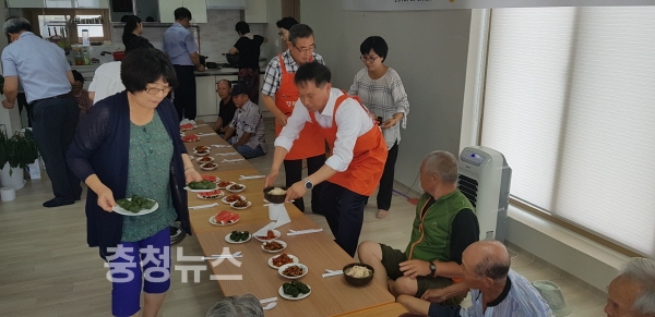 이날 행사에는 입추(立秋)를 맞아 조소행 본부장, 최낙천 서천군지부장, 이완구 한산농협조합장을 비롯해 농협 임직원과 마을주민 등 50여명이 참여한 가운데 연일 계속되는 무더위에 건강하게 여름을 보낼 수 있도록 마을회관에 냉풍기(2대)를 기증하고 마을 어르신들에게 삼계탕(120인분)과 수박을 대접하며 위로했다.