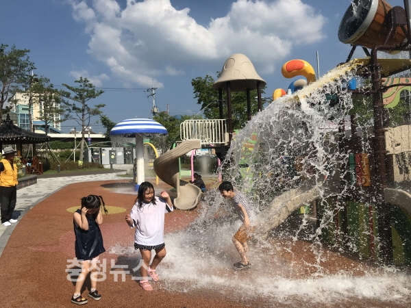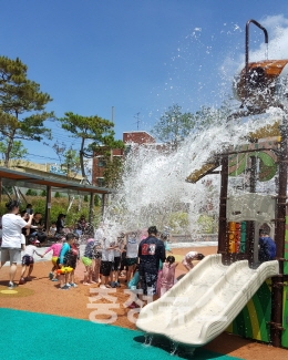 공원 내 물놀이시설을 즐기고 있는 어린이들 모습