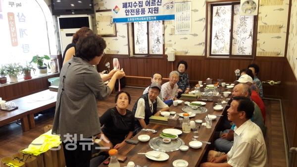 오류동 지역사회보장협의체(위원장 이정오)는 6일 폐지수집 노인 12명을 식당으로 초청해 식사를 제공하고 안전용품과 여름용품을 전달했다.