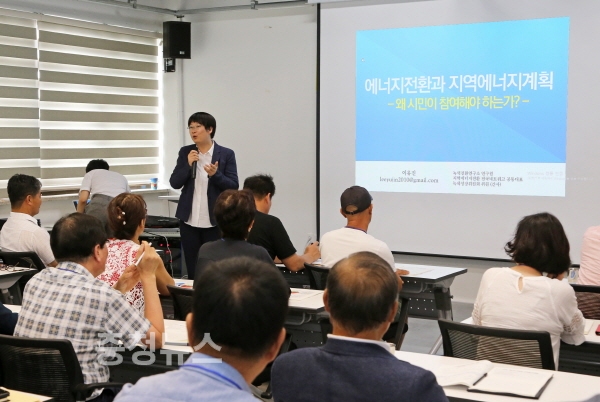 환경운동연합 주관으로 이날 열린 첫 회의에는 김홍장 시장과 시민참여단 43명 등 모두 50여 명이 참석한 가운데 시민참여단 위촉과 경과보고, 취지 설명에 이어 녹색전환연구소 이유진 이사의 ‘에너지 전환과 지역에너지계획’과 충남연구원 여형범 연구위원의 ‘충남 에너지전환 비전과 실천 과제’를 주제로 특강이 이어졌다.