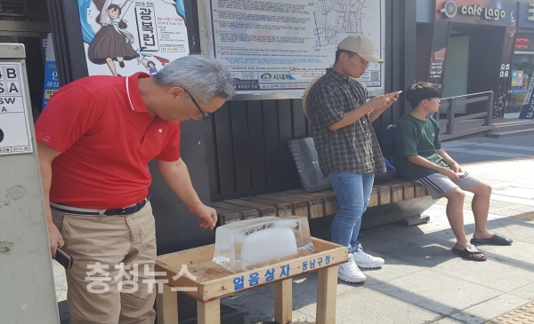 시민 이현령 씨(30·여, 불당동)는 “버스와 횡단보도 신호를 기다리다가 덥고 땀이 나서 힘들었는데 이렇게 그늘막과 얼음이 있으니 조금이나마 무더위를 식힐 수 있었다”며 “시민을 위한 폭염 대비 휴식 공간이나 시설, 시책 등이 지속해서 마련되길 바란다”고 말했다.