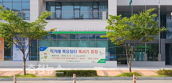 농협 충남지역본부(본부장 조소행)는 내포신도시 농축산물 직거래 목요장터를 폭염과 여름 혹서기 기간 임시휴장 한다고 8일 밝혔다.