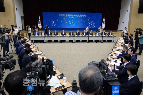 이번 회의에는 김동연 경제부총리와 산업부, 과기부 등 정부 혁신경제관계 장관 14명과 송재호 균형발전위원회 위원장, 장병규 4차산업혁명위원회 위원장 등이 참석해 지역 혁신 협력체계 구축방안, 지자체 혁신성장 투자 프로젝트 지원방안 등에 대해 토의했다.