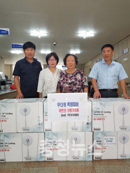 대사동 주민자치위원회(위원장 송정섭)는 선풍기 12대를 준비해 홀몸노인가정에 전달했다.