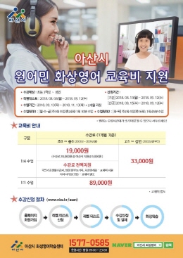 충남 아산시(시장 오세현)는 제3기 원어민 영어화상학습 수강생 450명을 선착순으로 모집한다고 밝혔다.