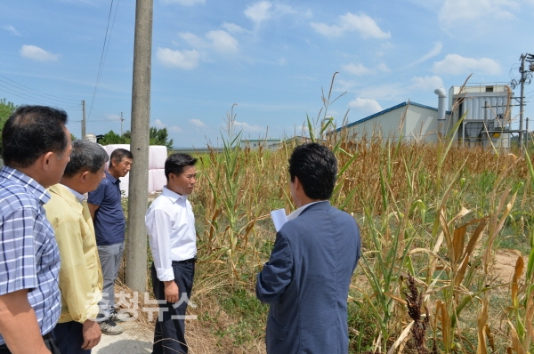 이어 벼농사를 짓고 있는 구룡면 농가를 찾아 상황을 살폈다. 가뭄으로 인해 물대기가 어려워 벼가 시들고 고사가 나타나 용수 공급이 절실했다.