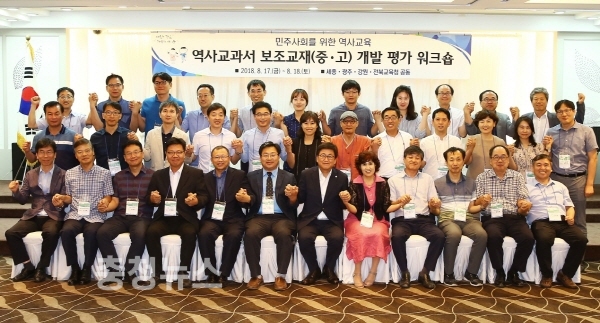 세종시교육청(교육감 최교진)은 17일 인터시티호텔에서 역사교과서 국정화에 대응하여 지난 2년 6개월 간 개발한 중·고등학교 역사교과서 보조교재에 대한 평가 워크숍을 집필진과 교육청 관계자 50여 명이 참석한 가운데 개최했다.
