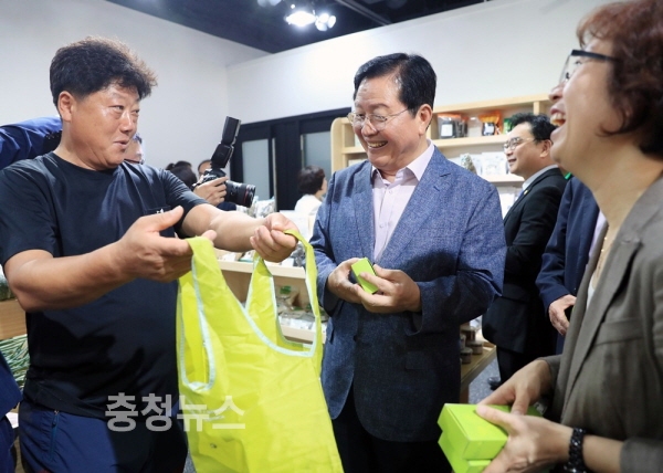 로컬푸드 전문판매장 개장식후 매장을 둘러보고 있는 장종태 구청장