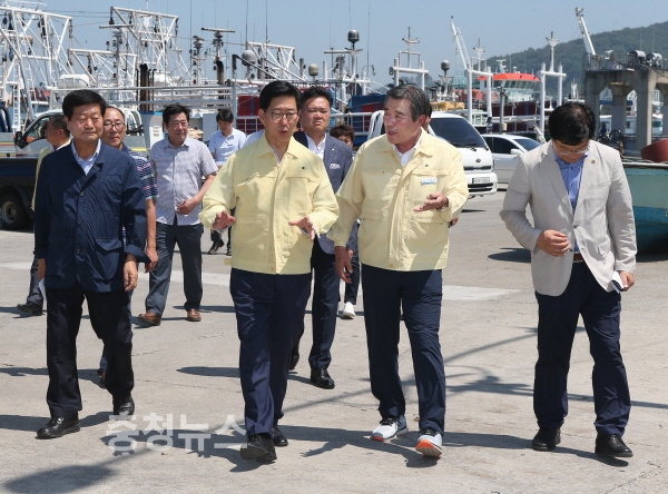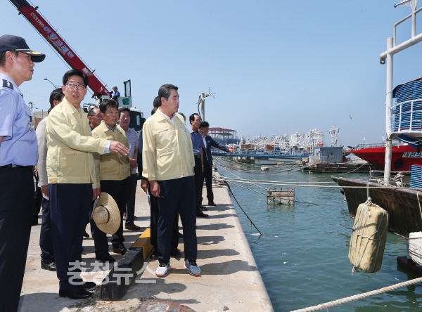 충남 보령시는 22일 오전 대천항 일원에서 양승조 충청남도지사와 김동일 보령시장, 이진철 보령해양경찰서장, 어업인 등 관계자가 참석한 가운데 제19호 태풍‘솔릭’을 대비하기 위한 해양수산분야 현장 점검을 가졌다.