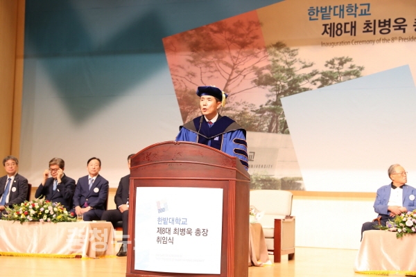 한밭대학교 제8대 최병욱 총장의 취임식이 22일 오후 2시 교내 아트홀에서 열렸다.