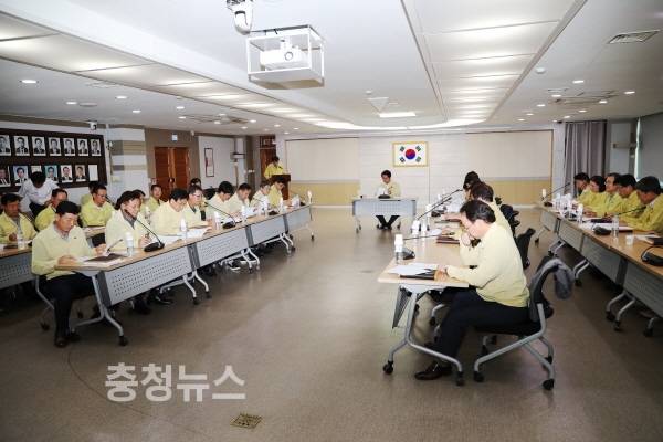 안전총괄담당관을 비롯해 건설과, 도로과, 산림과, 농정과 등 피해가 우려되는 시설물 관리 부서장과 17개 읍면동장 등 40여명이 참석한 가운데 열린 대책회의에선 부서별로 태풍 대비 사전 예방대책을 보고했다.
