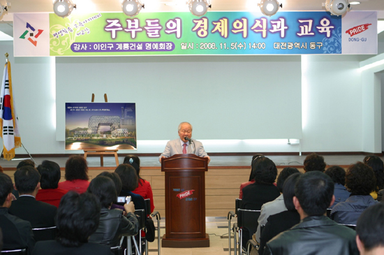 이날 교육아카데미는 이인구 계룡건설 명예회장을 초청, ‘주부들의 경제의식과 교육’이라는 주제로 강연을 진행했다.