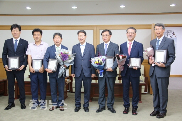 이날 이재관 행정부시장은 우수공사장으로 선정된 건국건설 주식회사 조항용 대표, 다우건설 전문수 회장, SK 건설(주) 김용규 PD를 비롯해 감리업체인 (주)구성건축사 사무소, (주)토문 엔지니어링, (주)유신건축 종합건축사에게 표창패를 수여하고 격려했다.