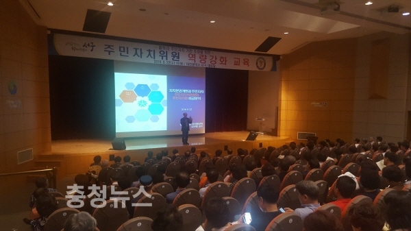 대전 서구(구청장 장종태)는 지난 22일 구청 대강당에서 각 동 주민자치위원과 주민 400여 명이 참석한 가운데, ‘자치분권 개헌과 주민자치의 최근 동향’이라는 주제로 ‘2018년 주민자치위원 역량 강화 교육’을 했다고 밝혔다.