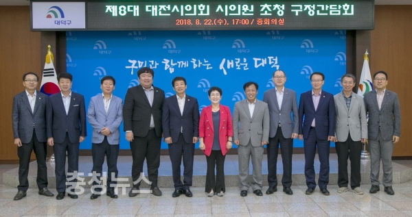 대전 대덕구(구청장 박정현)가 지난 22일 대전시의회 시의원을 초청해 구정 주요현안 사업을 설명하고 협력관계 구축을 위한 간담회를 가졌다.