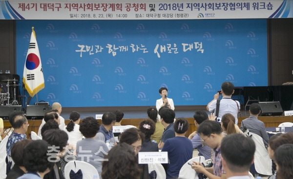 대전 대덕구(구청장 박정현)는 23일 구청 청렴관에서 제4기 대덕구지역사회보장계획(이하 계획) 수립을 위한 공청회 및 지역사회보장협의체 위원 워크숍을 개최했다.